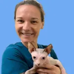 Meg enjoys the communication aspect of her position, helping to educate clients with regards to their furry family member. Meg prides herself on ensuring our patients feel comfortable, safe, happy and that tails are wagging after every appointment! When not at the clinic Meg loves to spend time outdoors, sking or hiking in New Hampshire with her Husband and son. Meg also enjoys a good trail run with her dog Gary who she adopted while they lived South Africa.